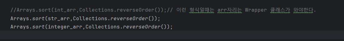 다음과 같이 Arrays.sort(배열,~) 형식으로 내림차순을 쓰려면